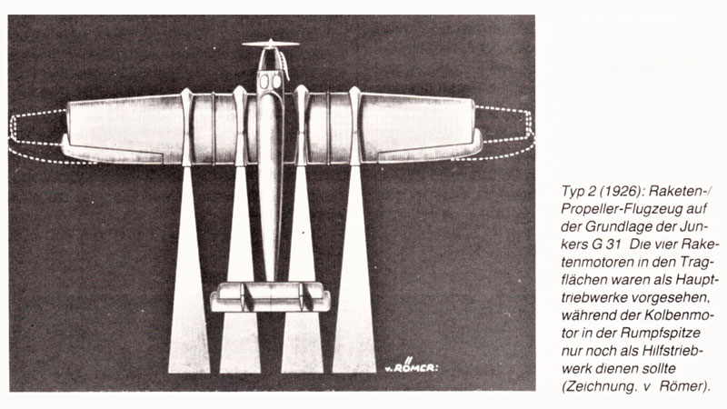 Max Valier veröffentlichte in mehreren deutschen Zeitungen und Zeitschriften seine Vorstellungen über die Entwicklung von Raketenflugzeugen. Es ist ein Verdienst von Karl Heinz Ingenhaag, dass er 1980 in der Zeitschrift „Luftfahrt Internation“ 5/1980 einige Beiträge dazu mit Zeichnungen der Gebrüder Römer zusammengetragen hat. Daraus zwei Beispiele: