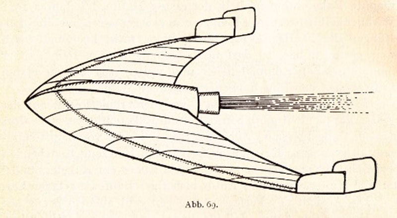 Das technische Gefühl würde, so Max Valier, nach einer Lösung nach Abbildung 69 drängen