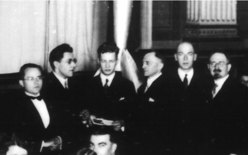 Gruppenfoto des Vorstandes des VfR mit Johannes Winkler, Willi Ley, Wernher von Braun, Rudolf Nebel, Max Valier, Erich Wurm vom 11.4.1930.12 (von links nach rechts)