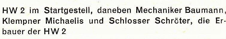 Sein Bestreben, diejenigen zu benennen, die mit ihm gearbeitet haben, setzt sich auch in seiner Dessauer Zeit fort. So sind nicht nur die Namen seiner Helfer beim Bau der HW 1 und HW 2 bekannt, sondern auch ein Foto hat die Jahrzehnte überdauert und wurde von Horst Körner 1960 veröffentlicht.