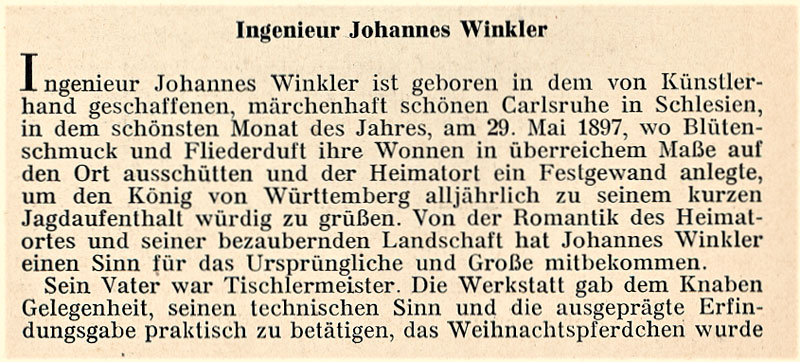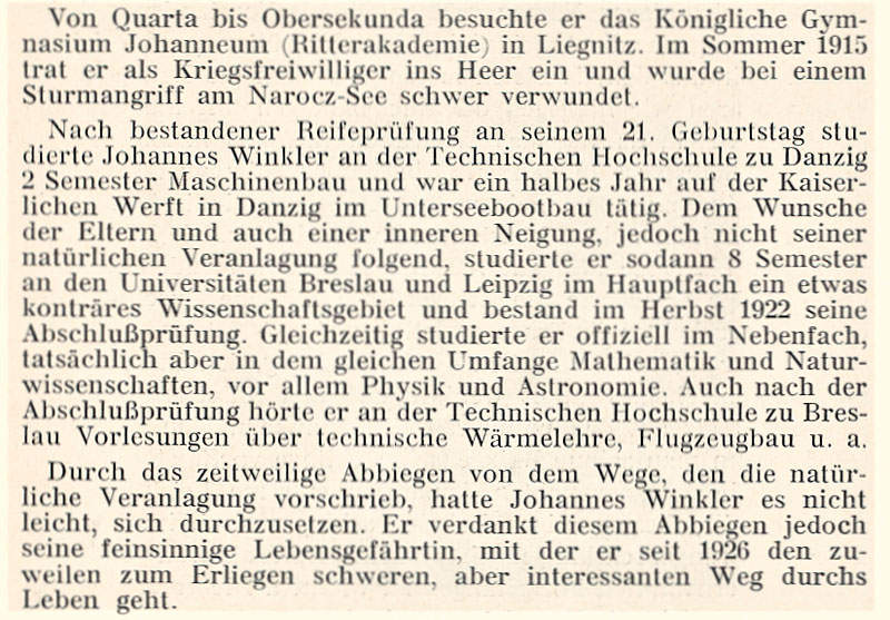 Johannes Winkler, geb. 29. 5. 97 zu Carlsruhe/Schles. Studium: Naturwissenschaften und Maschinenbau. Universitäten Breslau und Leipzig, Techn. Hochschulen Danzig und Breslau.