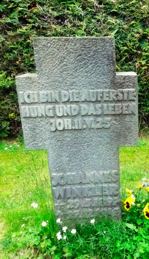 Johannes Winkler starb am 27.12.1947 in Braunschweig, wo er und seine Frau auch ihre letzte Ruhe fanden.